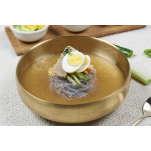 은빛색 부드러운 면가닥으로 가늘게 늘어져 한층 쫄깃한 맛이 풍기는 함흥냉면으로 식감이 매우 독특하여 고급스러운 냉면입니다.